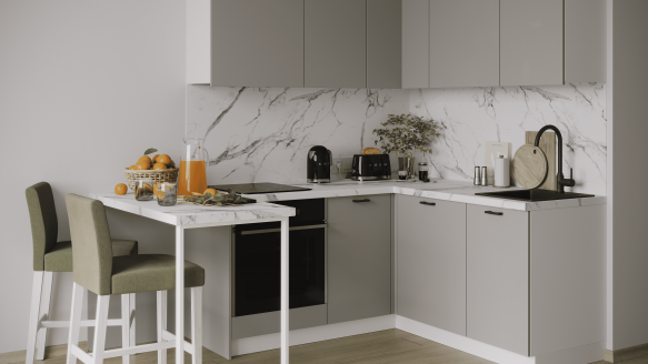 - кухня и техника + корпусная мебель +кровать (при наличии в планировке)+ мягкая мебель (диван, также при наличии впланировке)